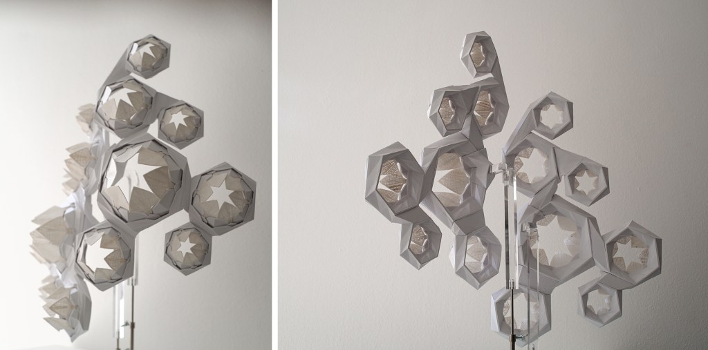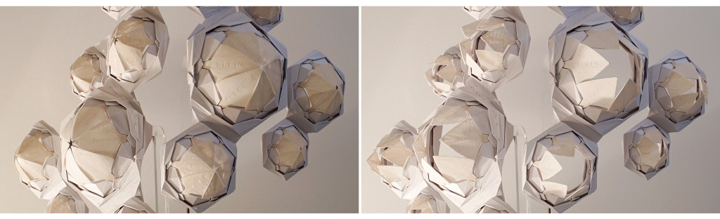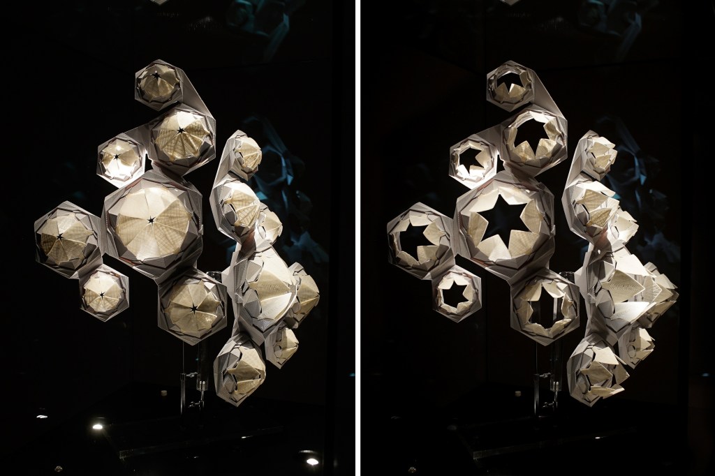 Completed piece was displayed in controlled climate chamber during ‘+ultra. gestaltung creates knowledge’ exhibition at the Martin Gropius Bau in Berlin. Closed apertures indicate a high R.H.% state.