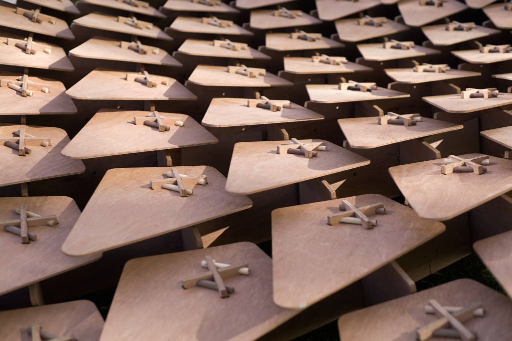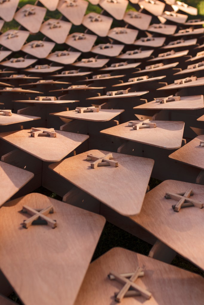 Fabricated and assembled over 3 days, the pavilion is an adaptable design-to-fabrication system that can be customized to suit local material availability and fabrication tools. Each workshop participant is provided with the tools and skills required to develop a unique version that can better meet their needs. Built using the state-of-the-art eight-axis industrial robot at CAWP, the pavilion demonstrates how old materials and new technologies can reshape our built environment.